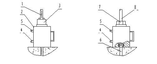 1 被測(cè)錨桿(螺紋鋼) 2液壓缸 3 錨具 4 進(jìn)油口 (加載時(shí)) 5出油口(加載時(shí))